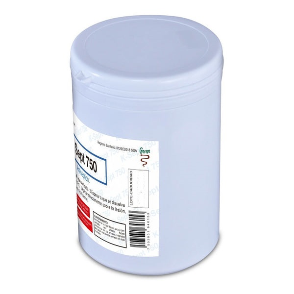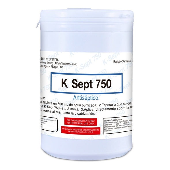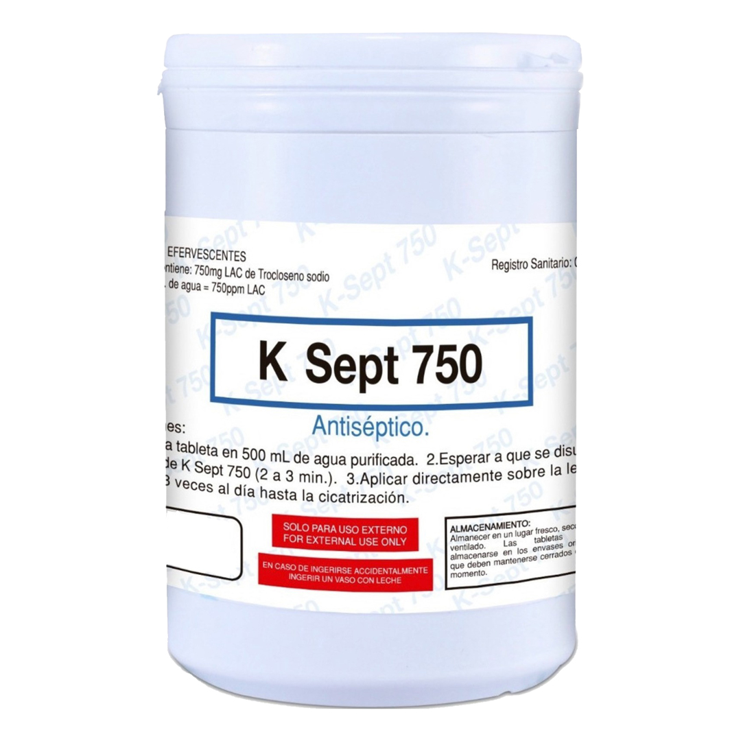 K-Sept 750 está respaldado por una amplia experiencia clínica. Se presenta en bote de 100 Tabletas efervescentes y está registrado para “desbridamiento, irrigación, higiene y limpieza de heridas y piel”.